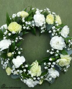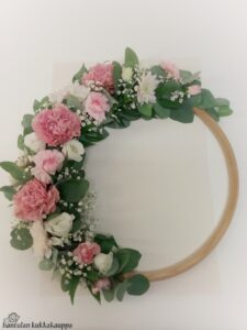 • kastekranssi kastemaljan ympärille • kukkaviehe kastemekkoa koristelemaan • asetelmat tai kimput kaste- ja tarjoilupöytään